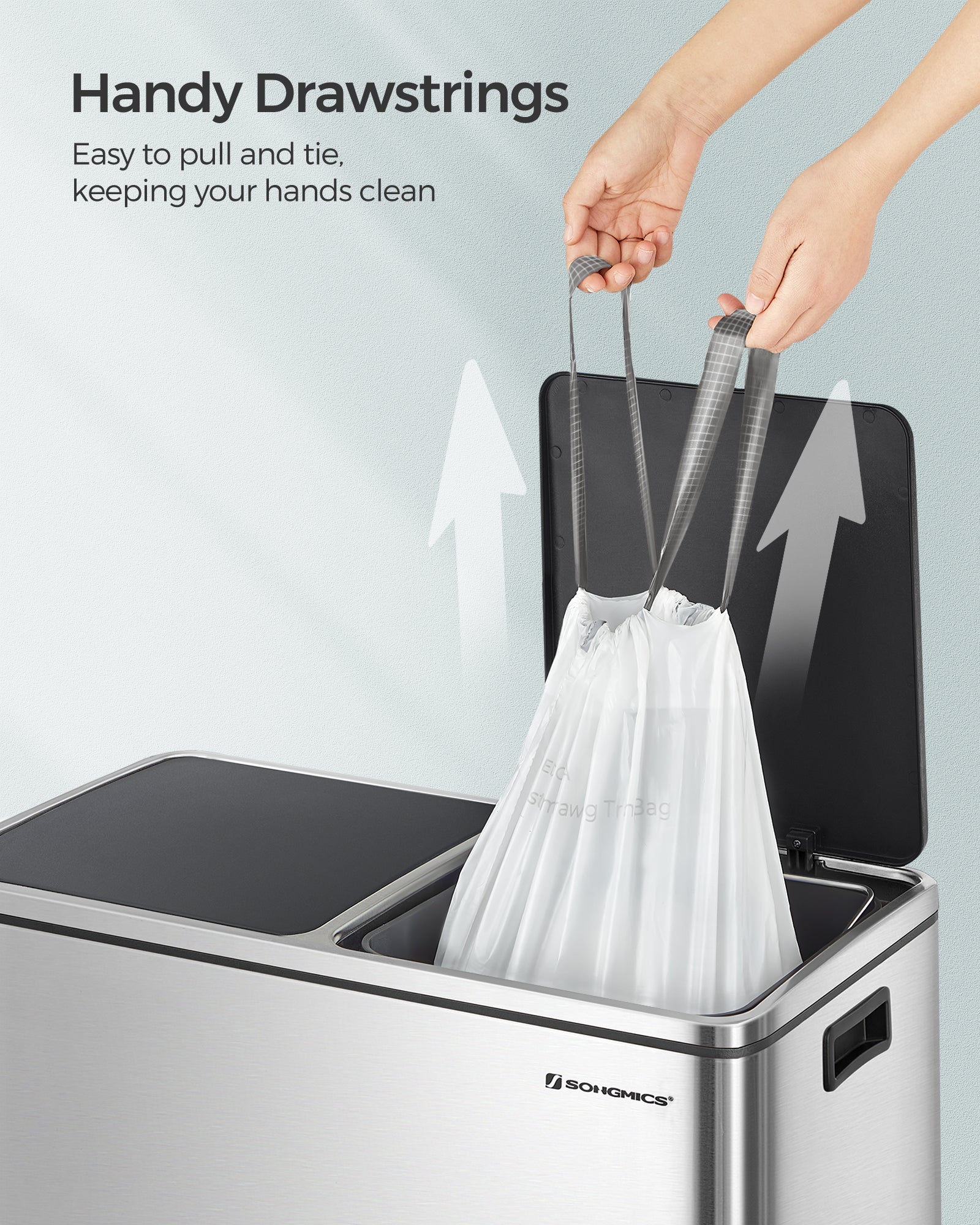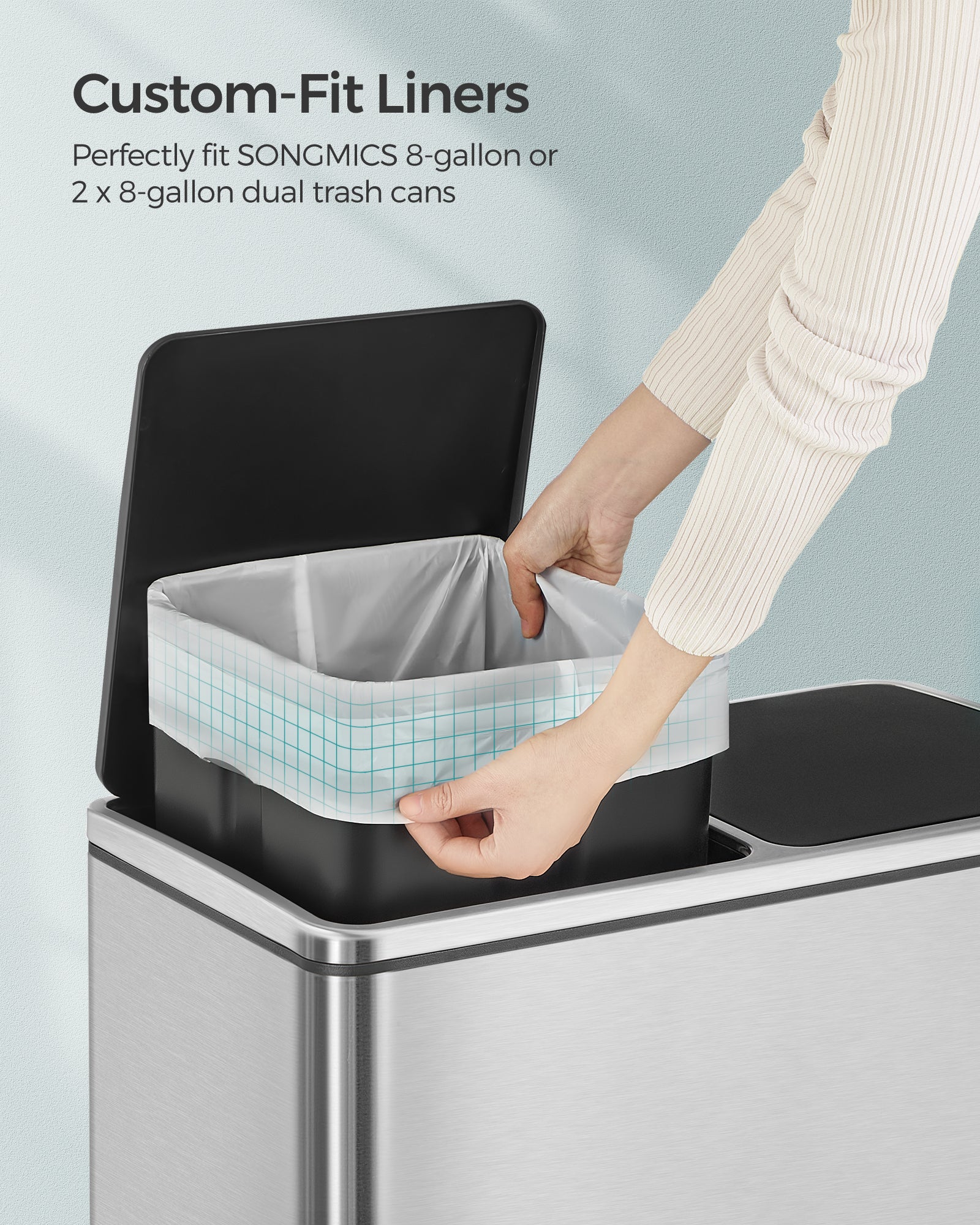 0.8 mil Heavy-Duty Trash Bags - 44lb Capacity, Tear & Leak Proof, Pre-Separated, Drawstring Closure, Fits SONGMICS 8 Gal Can (30A, 4x45 Rolls), White