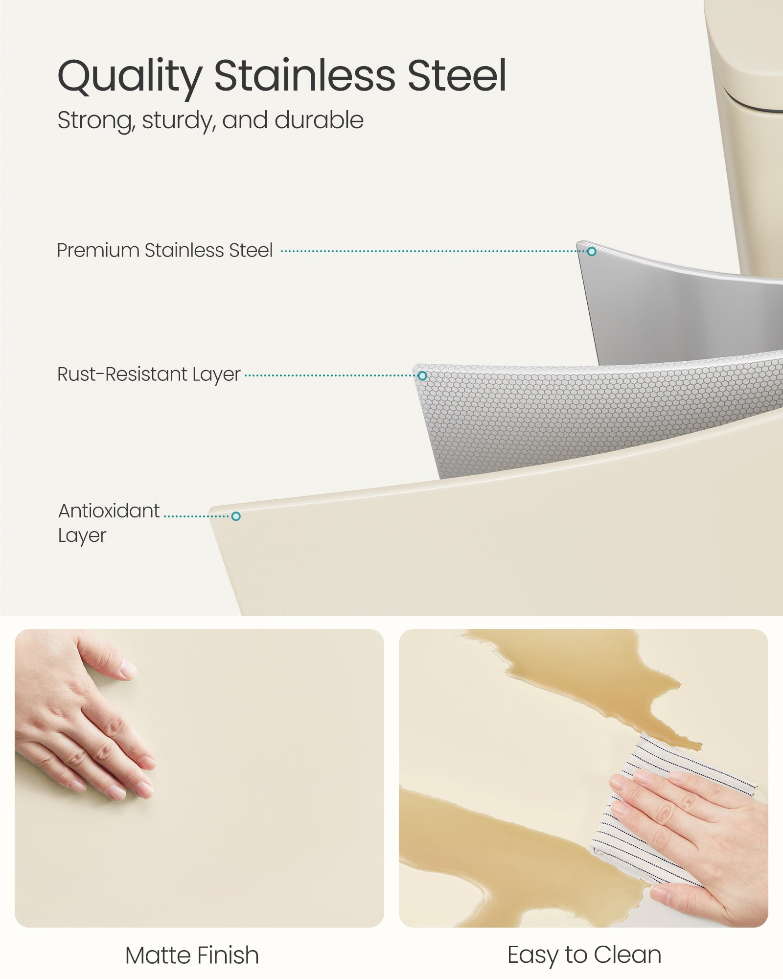 13 Gallon (50 L) Trash Can, Stainless Steel Kitchen Garbage Can, Recycling or Waste Bin, Soft Close, Step-On Pedal, Removable Inner Bucket, Sand Beige