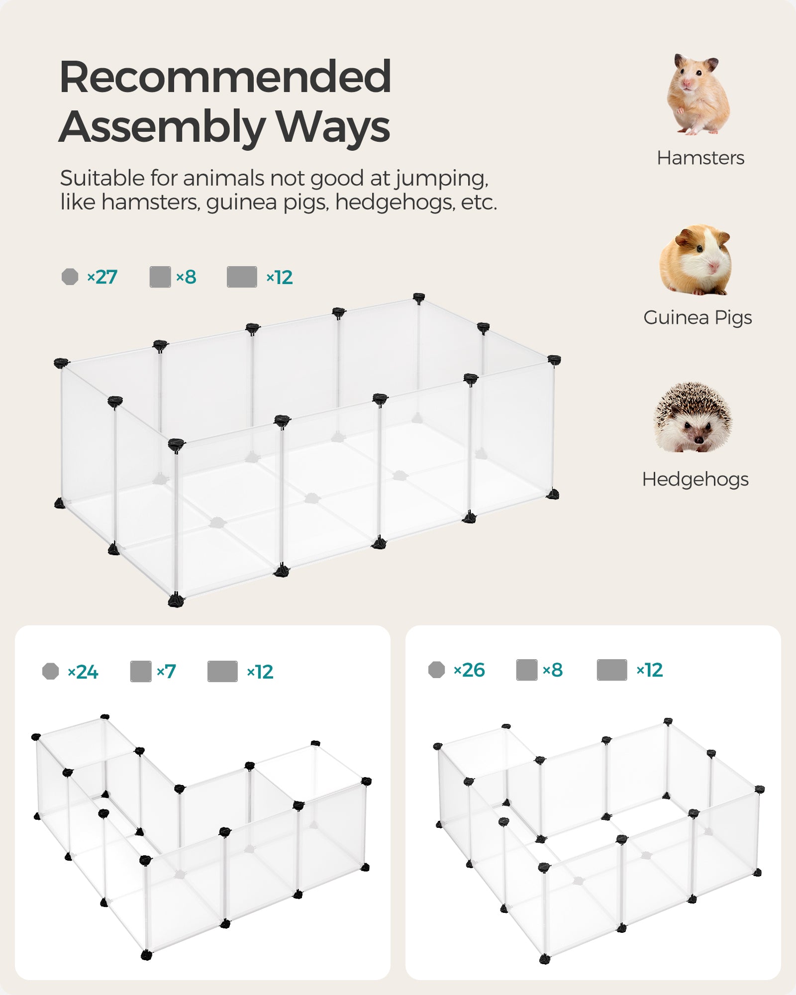 20 Panels Pet Playpen with Floor, Small Animal Playpen, Pet Fence Indoor, DIY Plastic Enclosure for Guinea Pigs, Bunny, Hamsters, Hedgehogs, 49.2 x 24.8 x 16.5 Inches, White