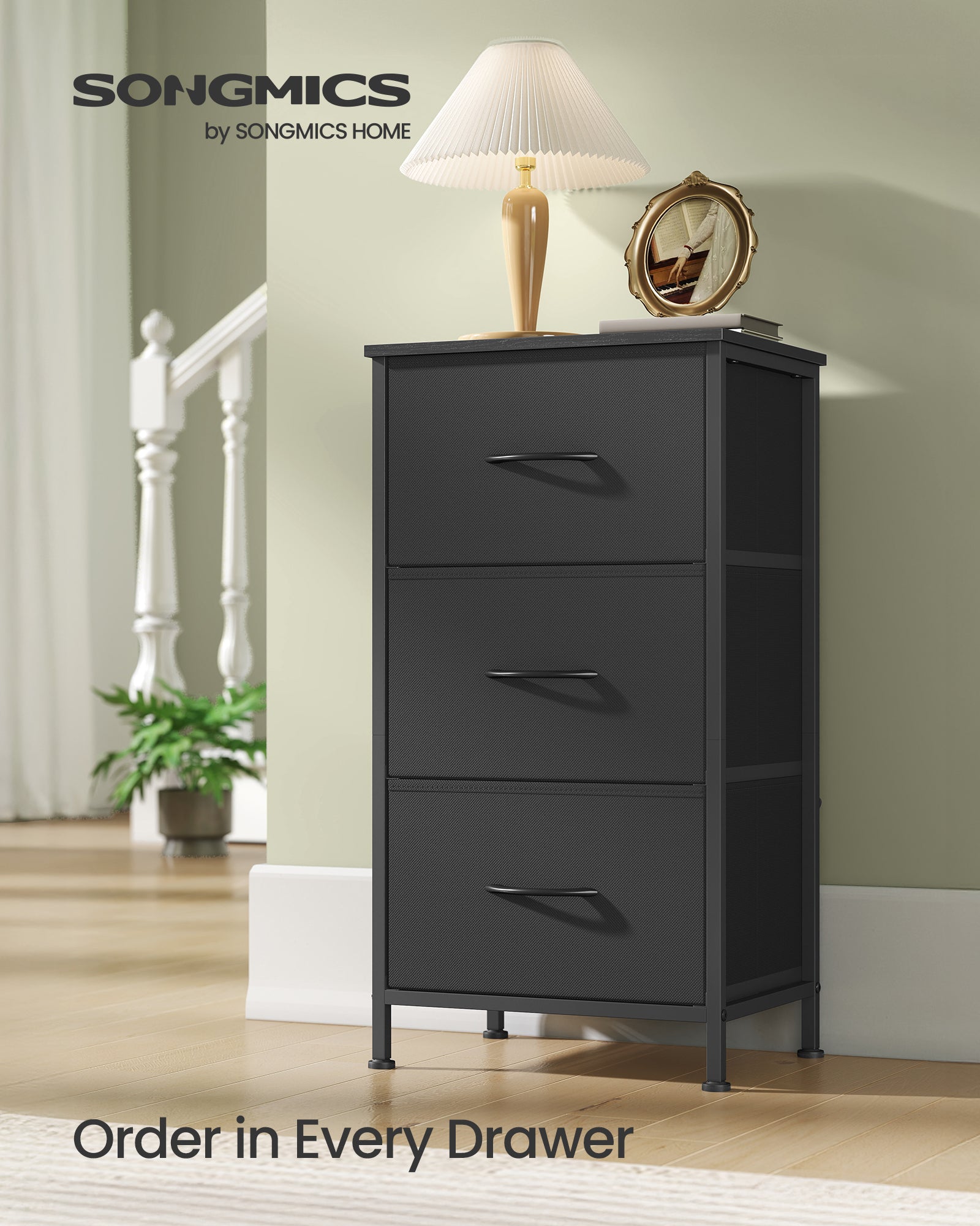 3-Drawer Fabric Dresser with Steel Frame, 66 lb Top Load Chest of Drawers, Multi-Use Storage Organizer for Bedroom Entryway, Black