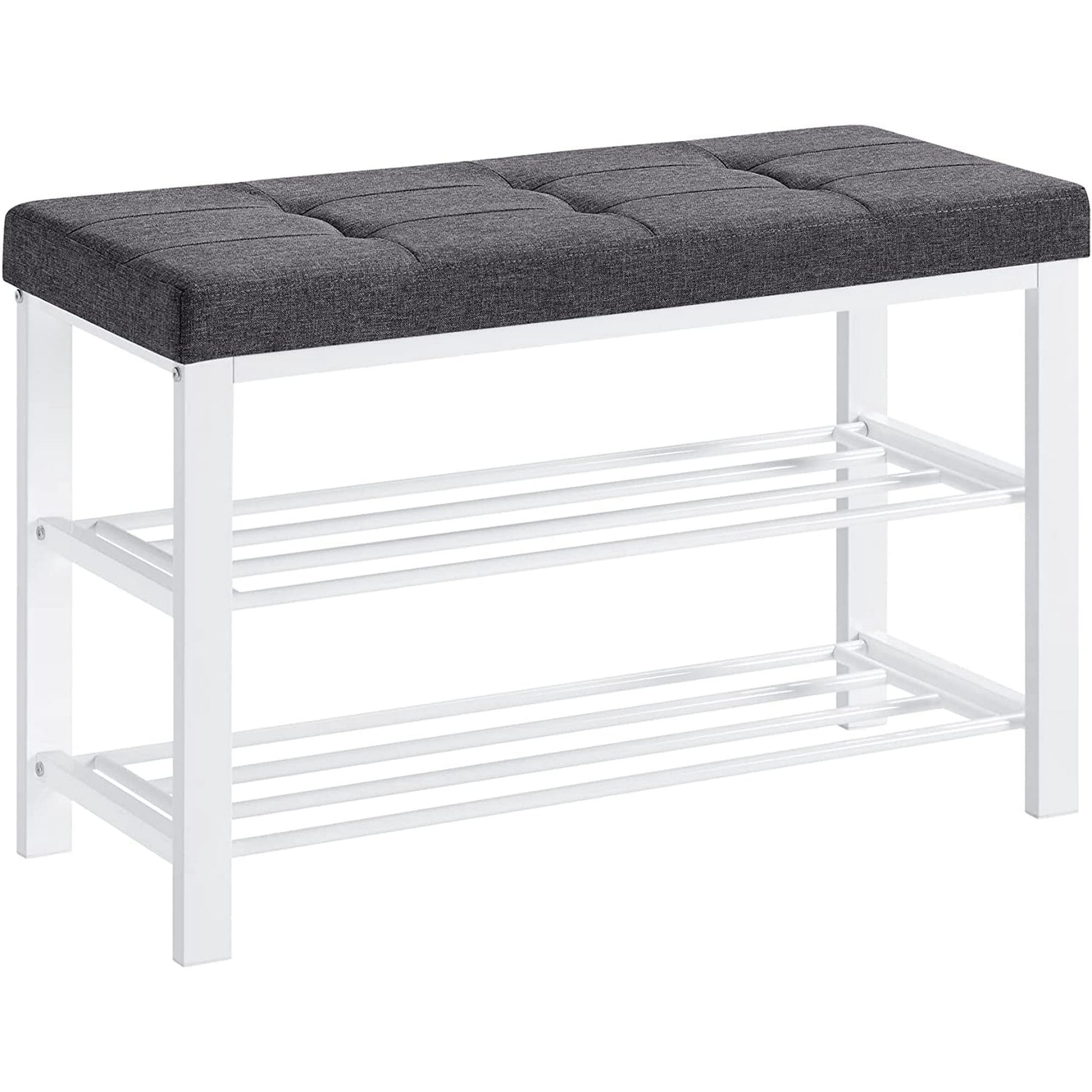 3-Tier Shoe Rack Shoe Bench for Entryway Storage Organizer with Metal Frame for Living Room Hallway 12.2 x 31.9 x 19.3 Inches, Gray and White