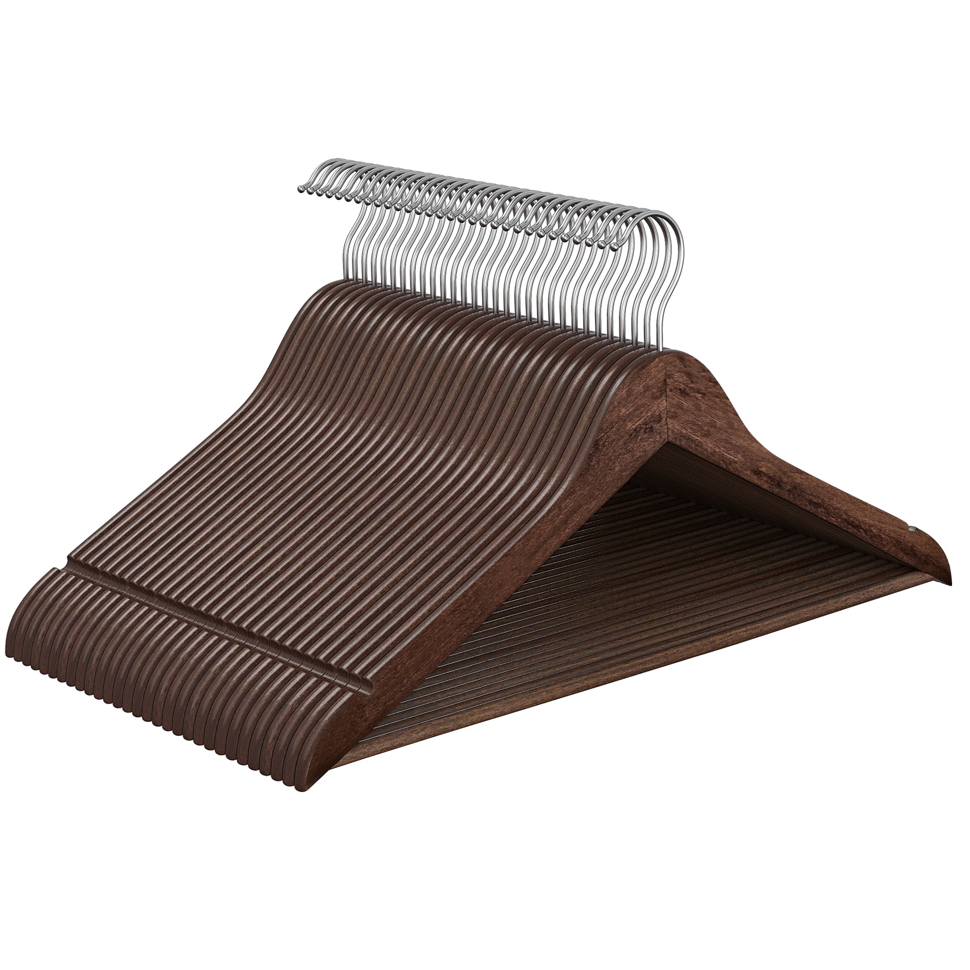 30-Pack Solid Birch Wood Hangers with Pants Bar & 360° Swivel Hooks, Space Saving Closet Organizers for Jackets Coats, Walnut Brown