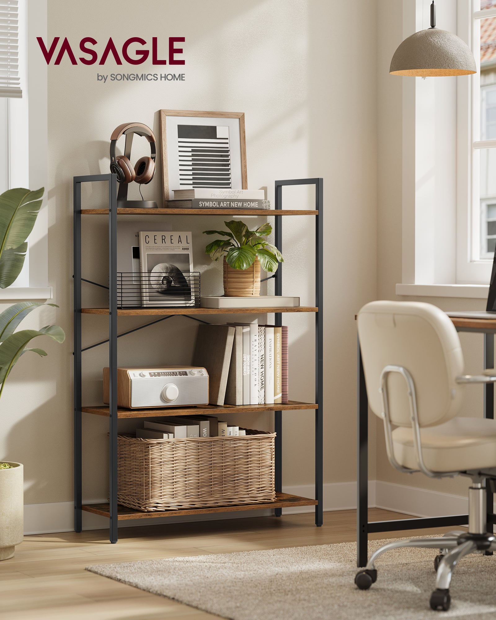 4 - Tier Industrial - Style Tall Bookshelf. Measures 11.8 x 31.5 x 47 inches. Perfect for living rooms, home offices,Honey Brown and Black