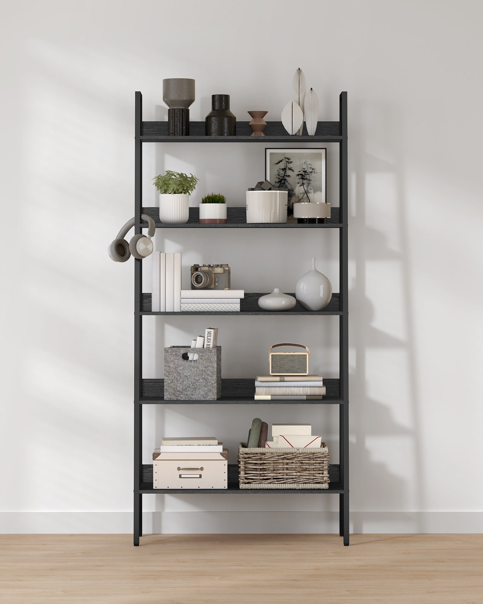 5-Tier Bookcase, Extra Wide Ladder Shelf for Home Office, Living Room, Bedroom, Black