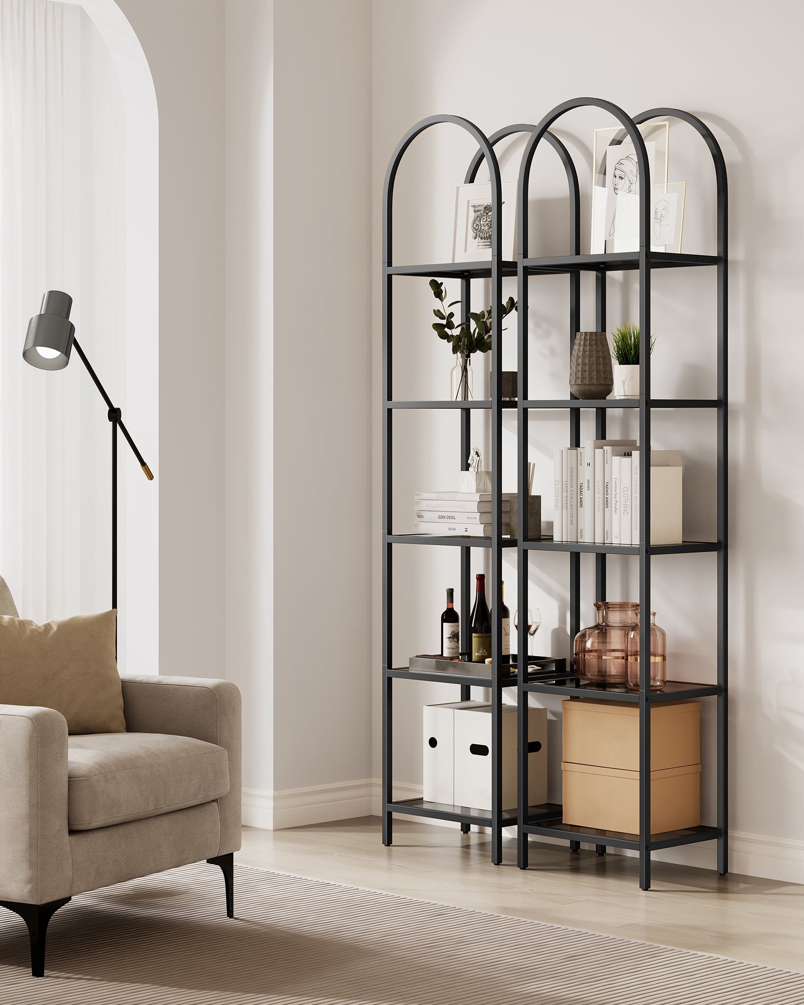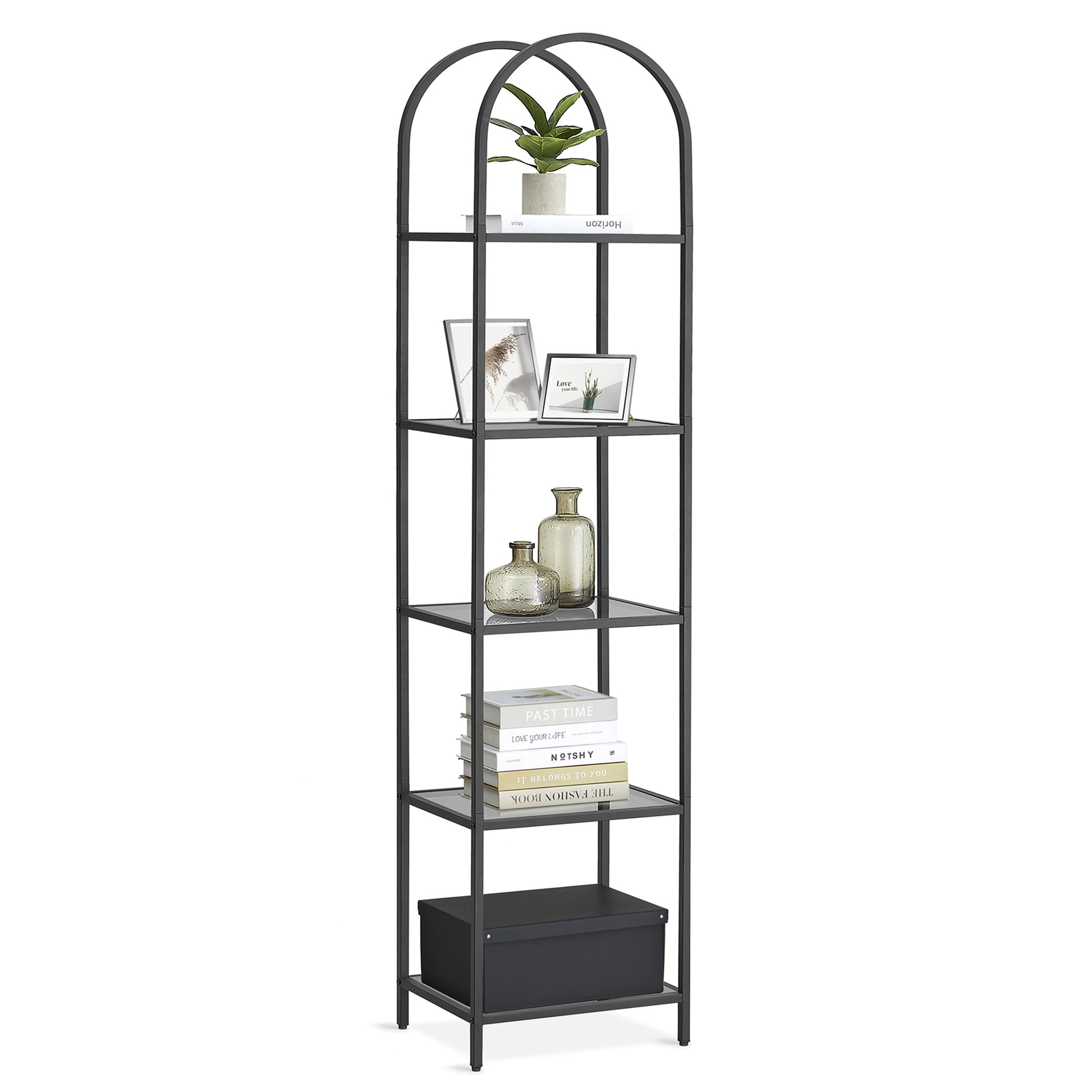 5-Tier Shelf, Tempered Glass Shelving Unit, Arched Design for Living Room Bedroom, Gray