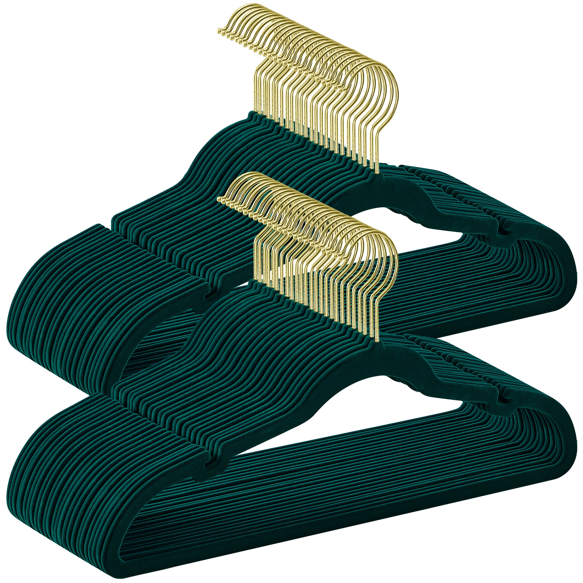 50-Pack Velvet Non-Slip Hangers with 360° Swivel Hook, Pants Bar & Shoulder Notches, Space Saving Closet Hangers, Forest Green