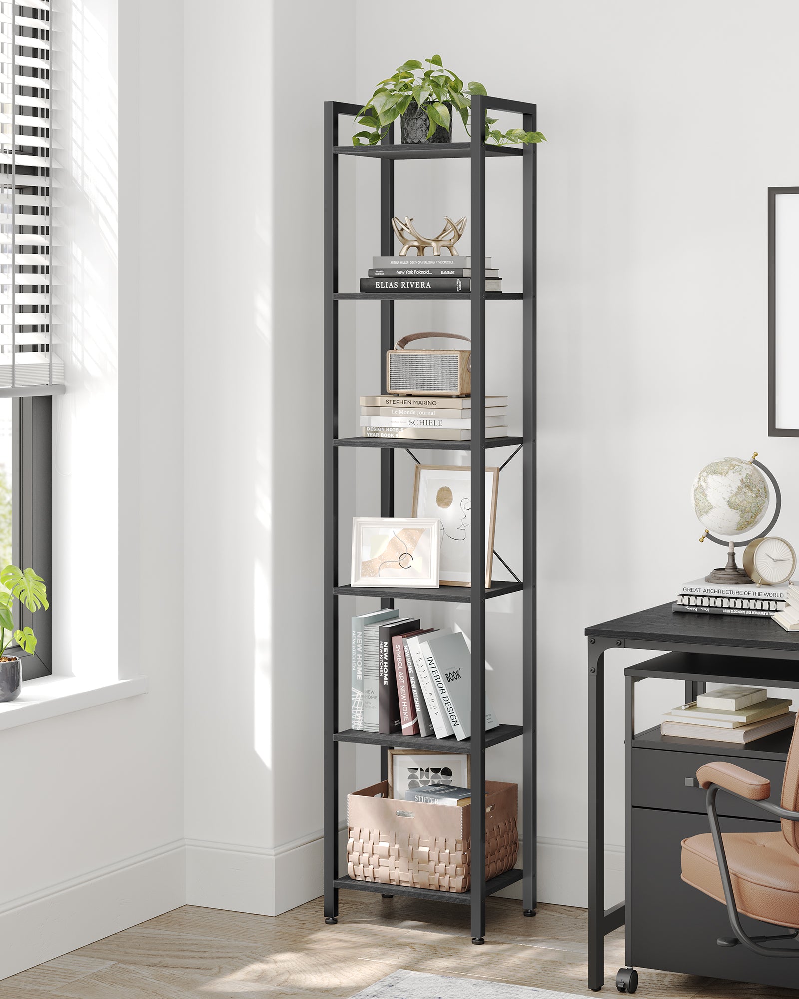 6-Tier Bookshelf, Black Modern Bookcase, Shelving Unit, for Office, Study, Living Room