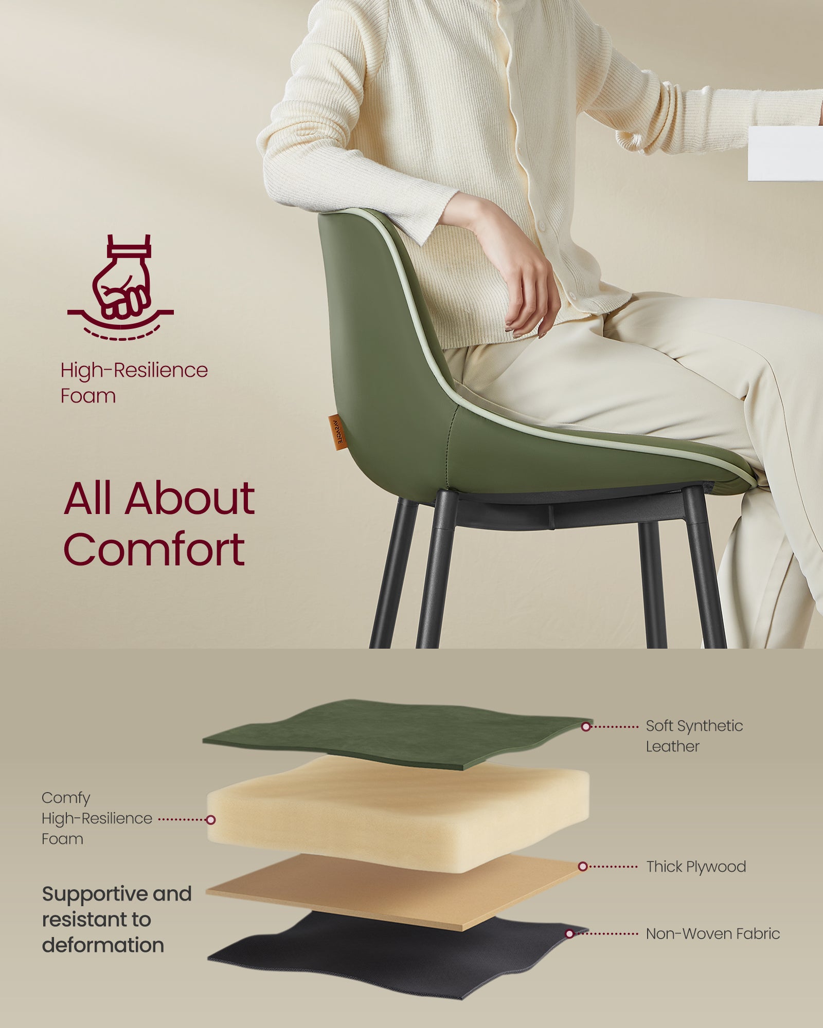 Bar Stools Set of 2, Bar Height Bar Stools with Back, Ergonomic Backrest, Synthetic Leather, Metal Legs, 28.7-Inch Tall Barstools for Kitchen Island Home Bar, Easy Assembly, Forest Green