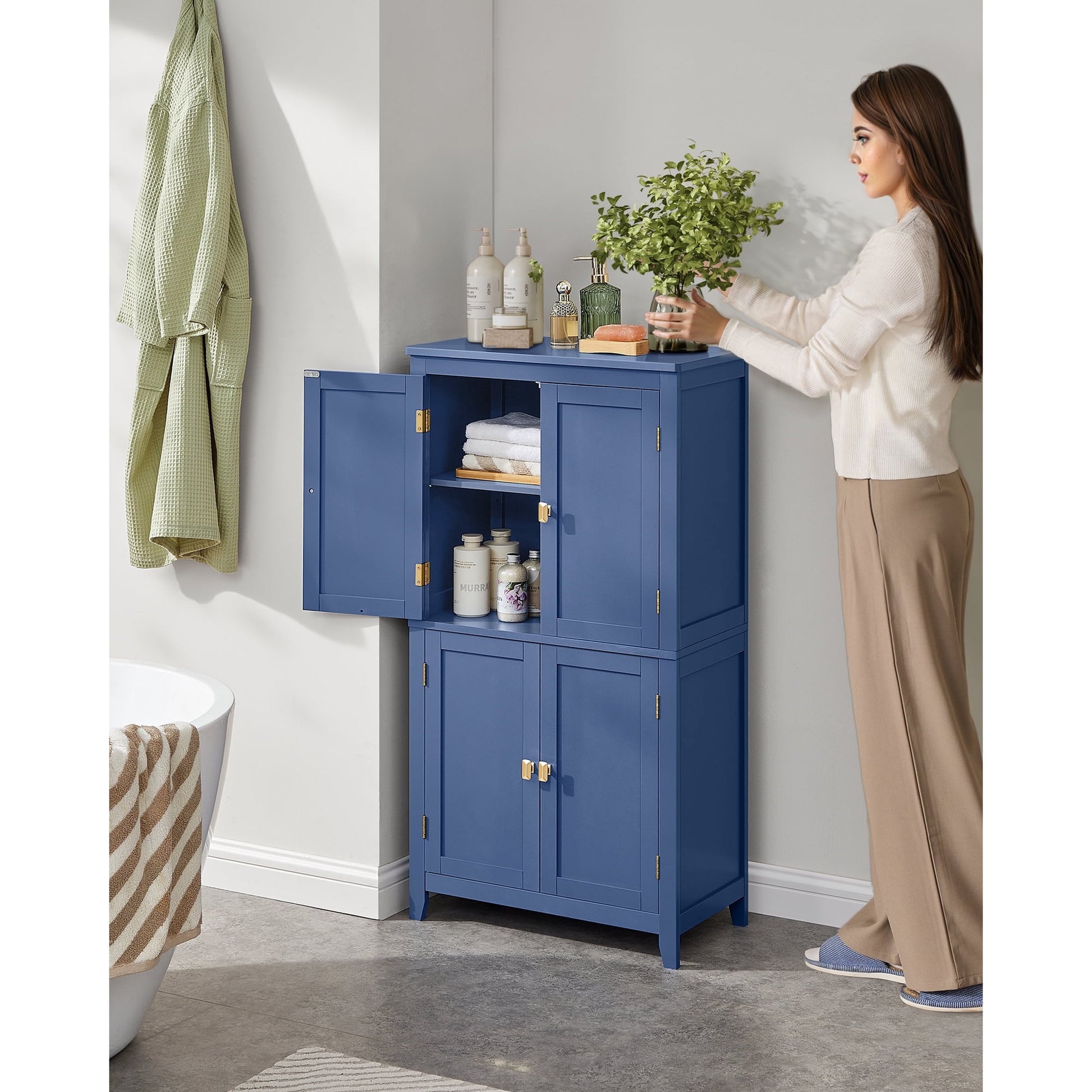 Bathroom Floor Storage Cabinet, Bathroom Storage Unit,Harbor Blue