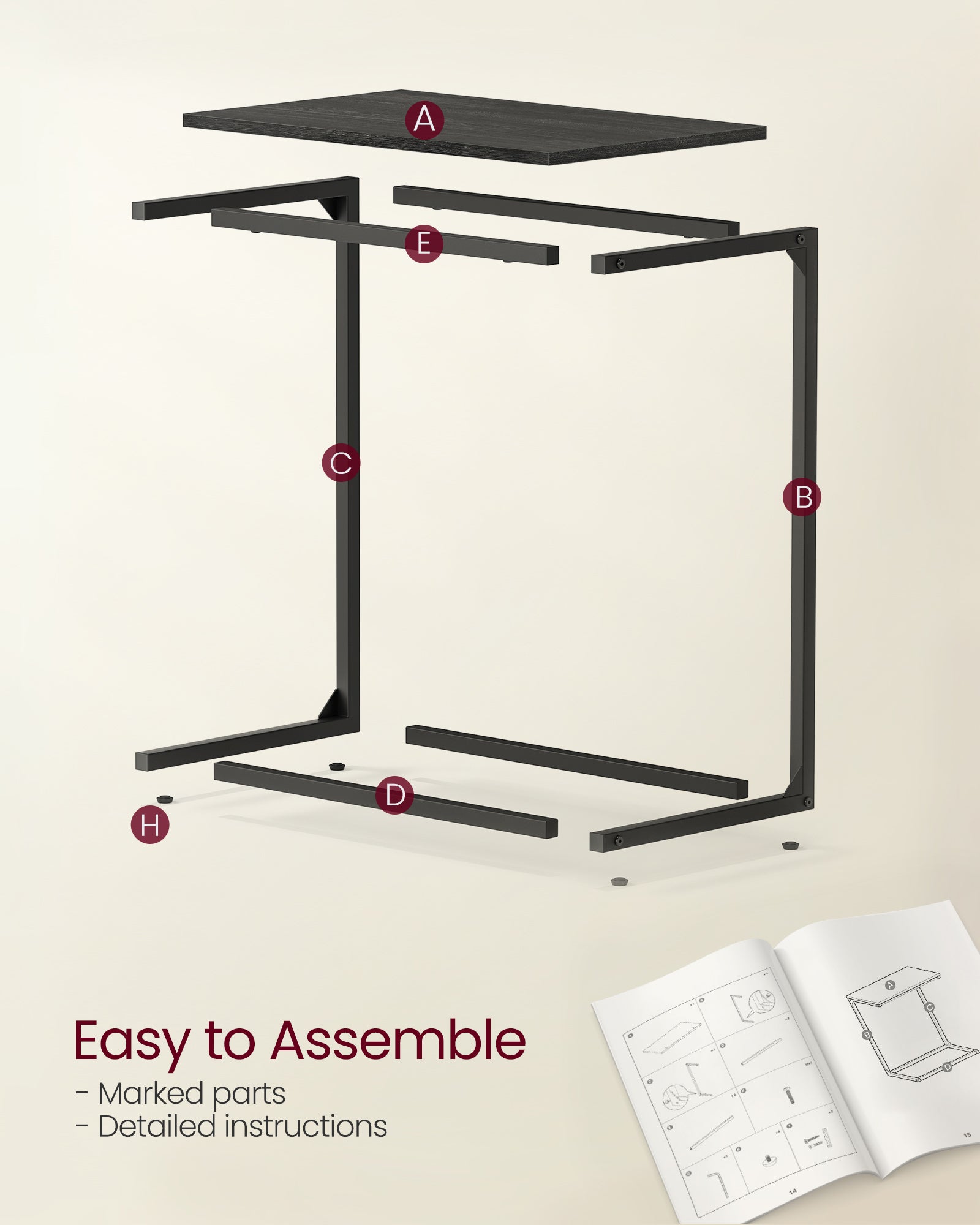 C Shape End Table, Small Coffee Table For Couch Or Sofa, Industrial Side Table In Living Room, Bedroom, 13.8 x 21.7 x 26 Inches, Ebony Black
