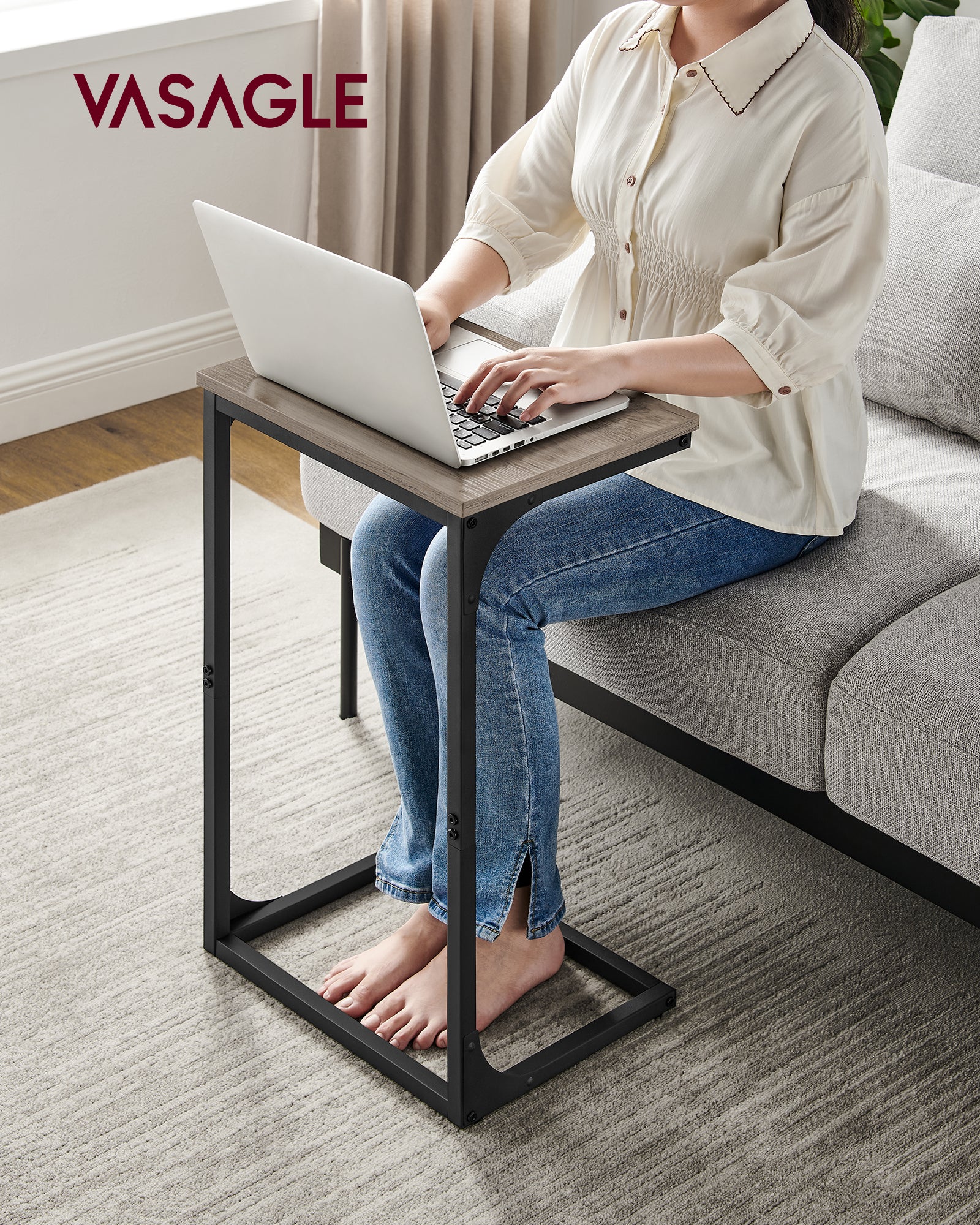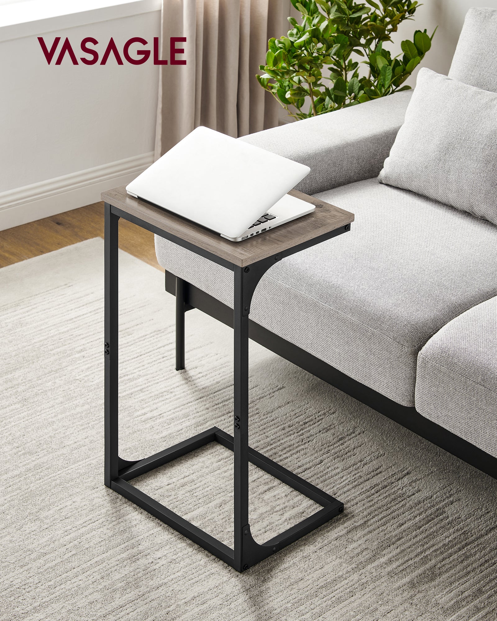 C-Shaped End Table, Side Table for Sofa, Couch Table with Metal Frame, Small TV Tray Table for Living Room, Bedroom, Greige and Black