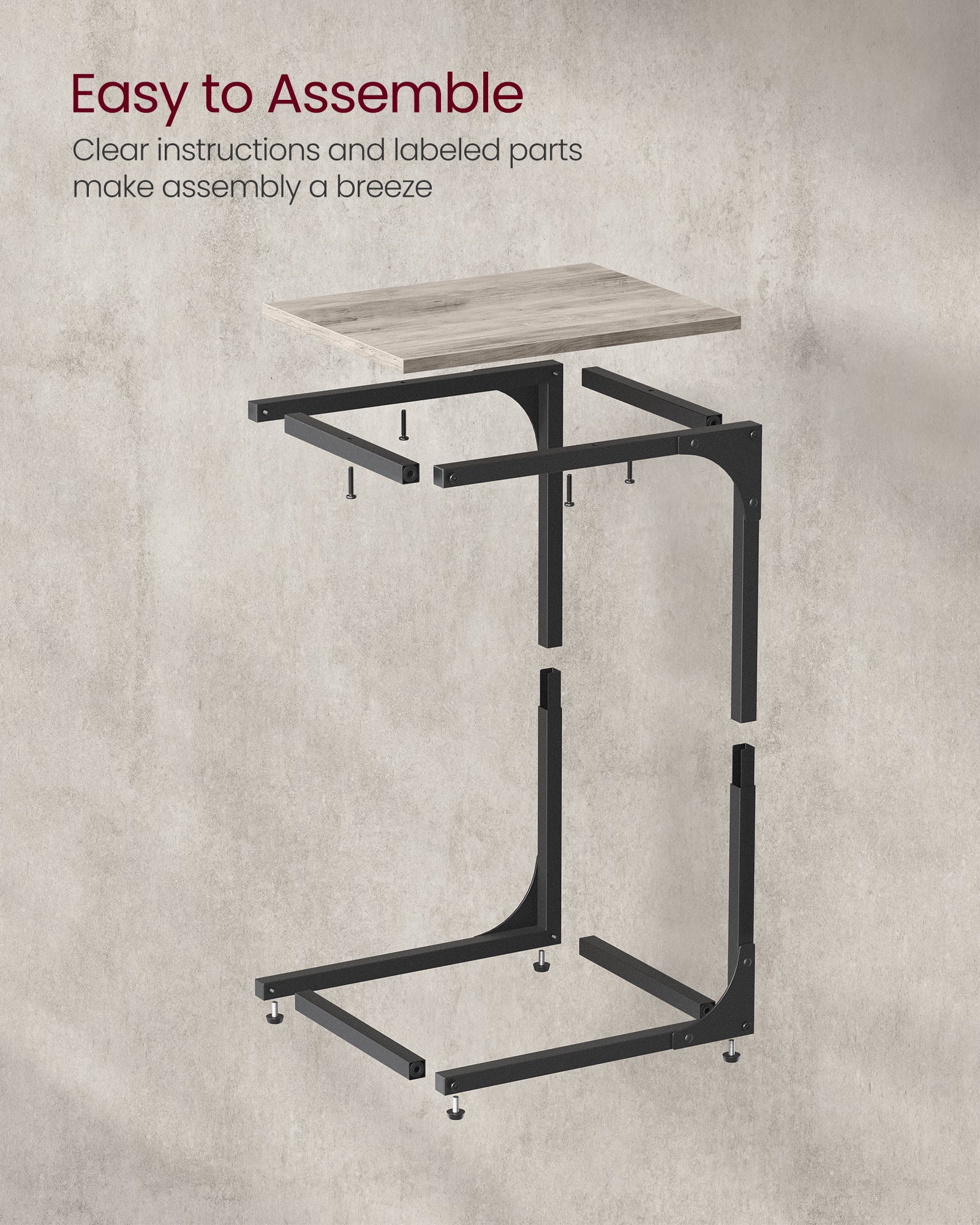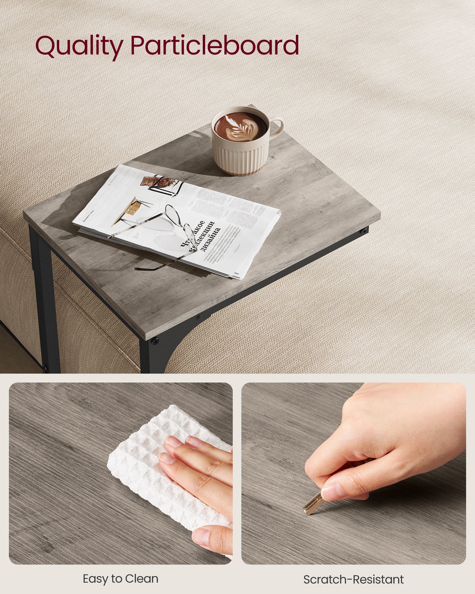 C-Shaped End Table, Small Side Table for Couch, Sofa Table with Metal Frame for Living Room, Bedroom, Bedside, Greige and Black