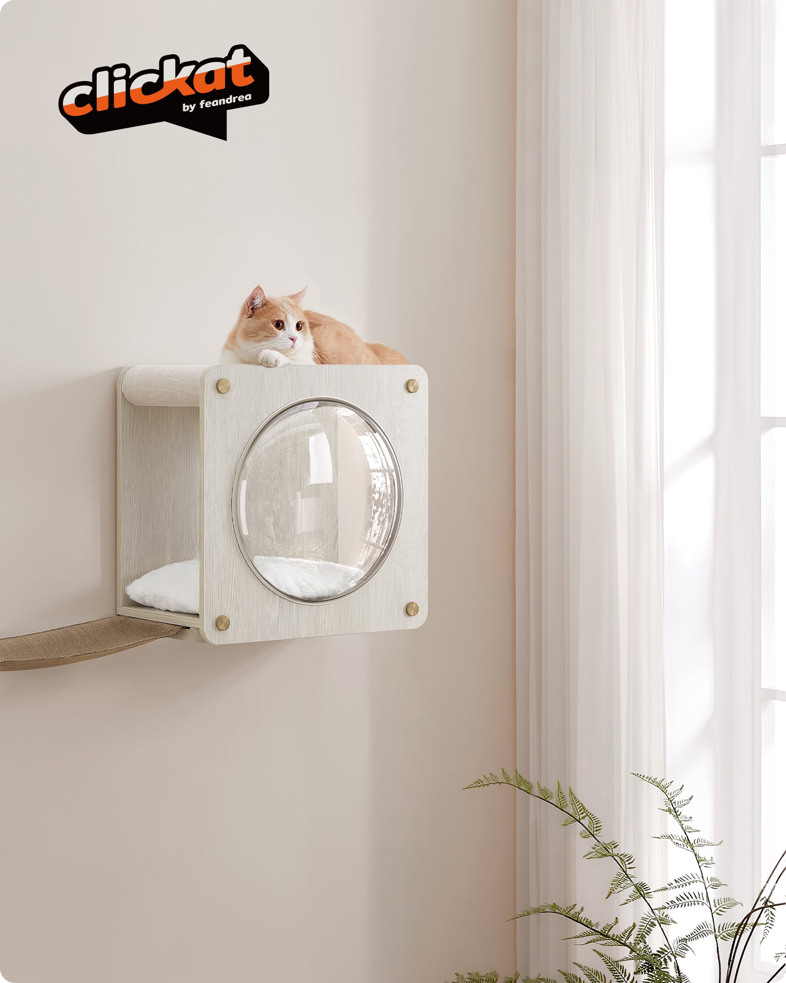 Clickat Collection - No.010 Cat Cave Cat Wall Condo House with Hammock Observation Window Extremely Quick Assembly Unlimited Expandability Replaceable Module and Cushion