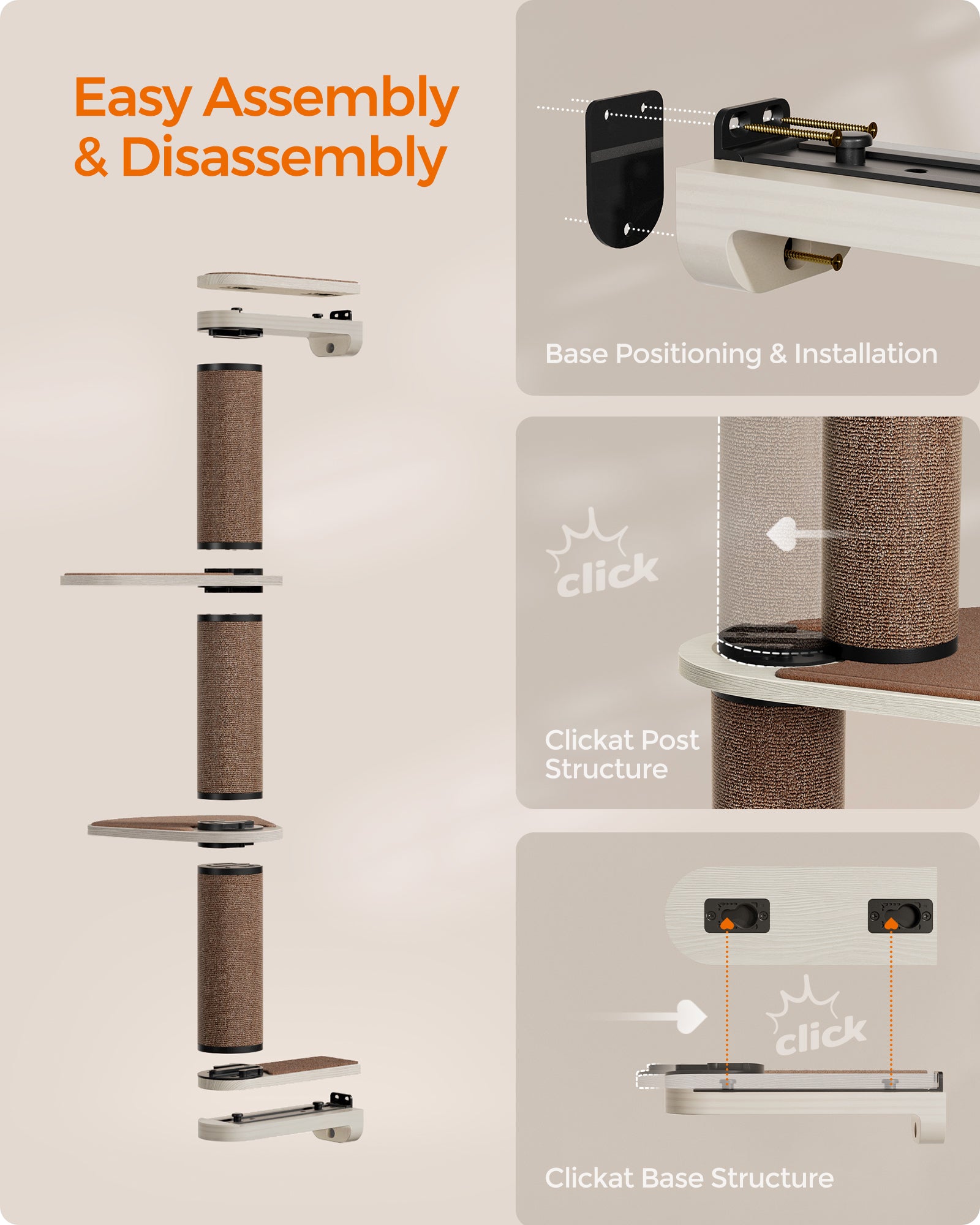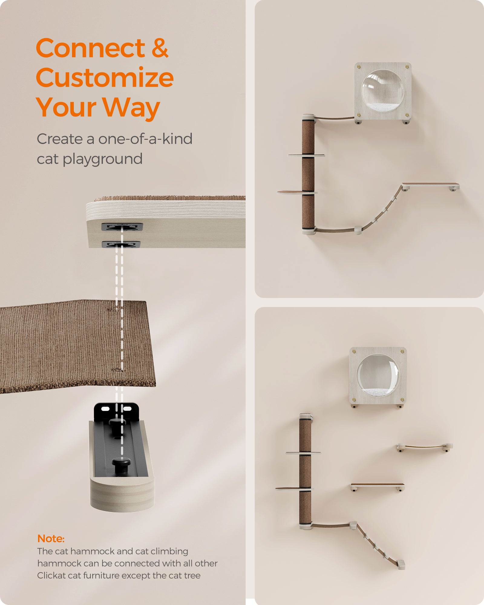 Clickat Oasis - Cat Wall Furniture, Set of 5, Cat Wall Shelf, Wall-Mounted Cat Hammock, Scratching Post, Cave, Extremely Quick Assembly, Unlimited Expandability, Replaceable Module and Parts