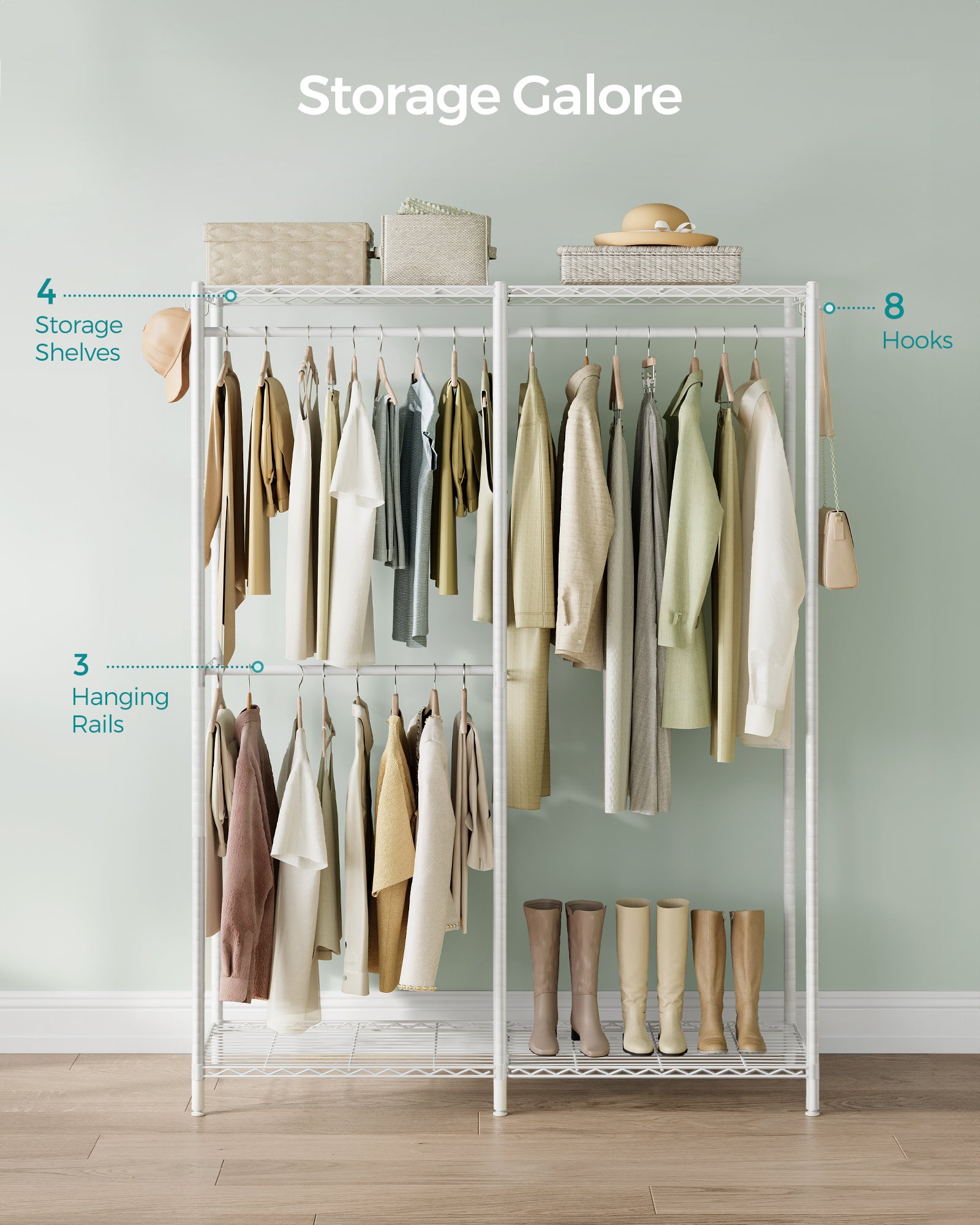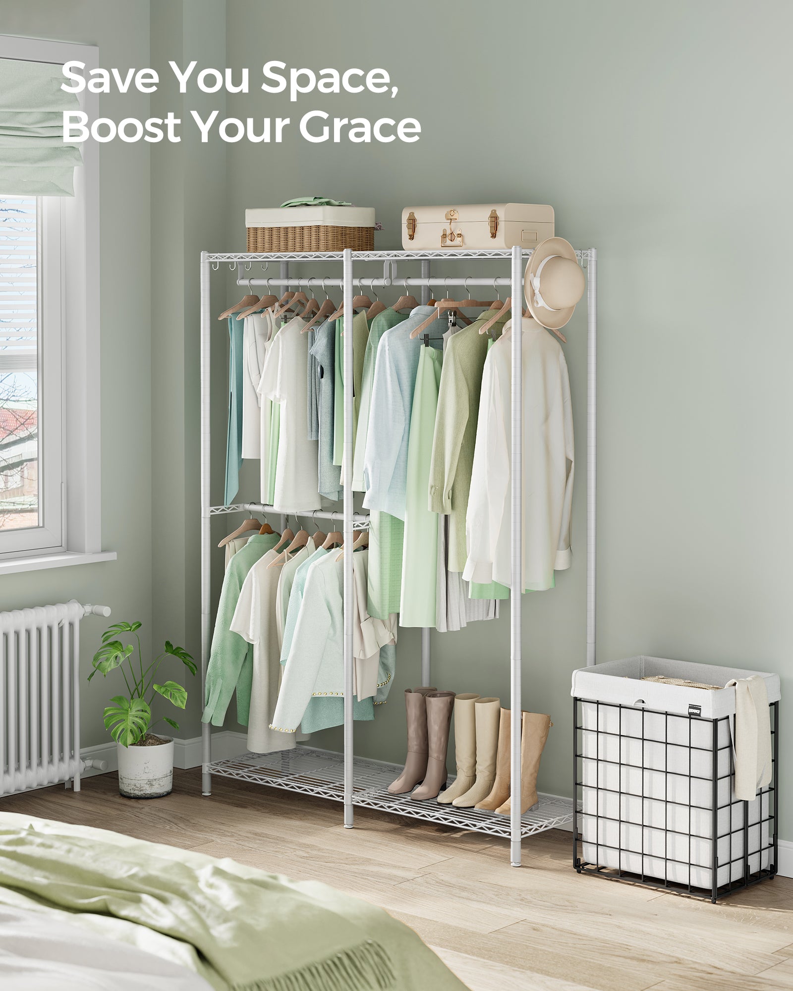 Clothes Rack, Freestanding Wardrobe Closet, Metal Clothing Racks, Heavy-Duty Garment Rack with Adjustable Shelves, Hanging Rods, Dividable, 15.8 x 47.2 x 70.9 Inches, Cloud White