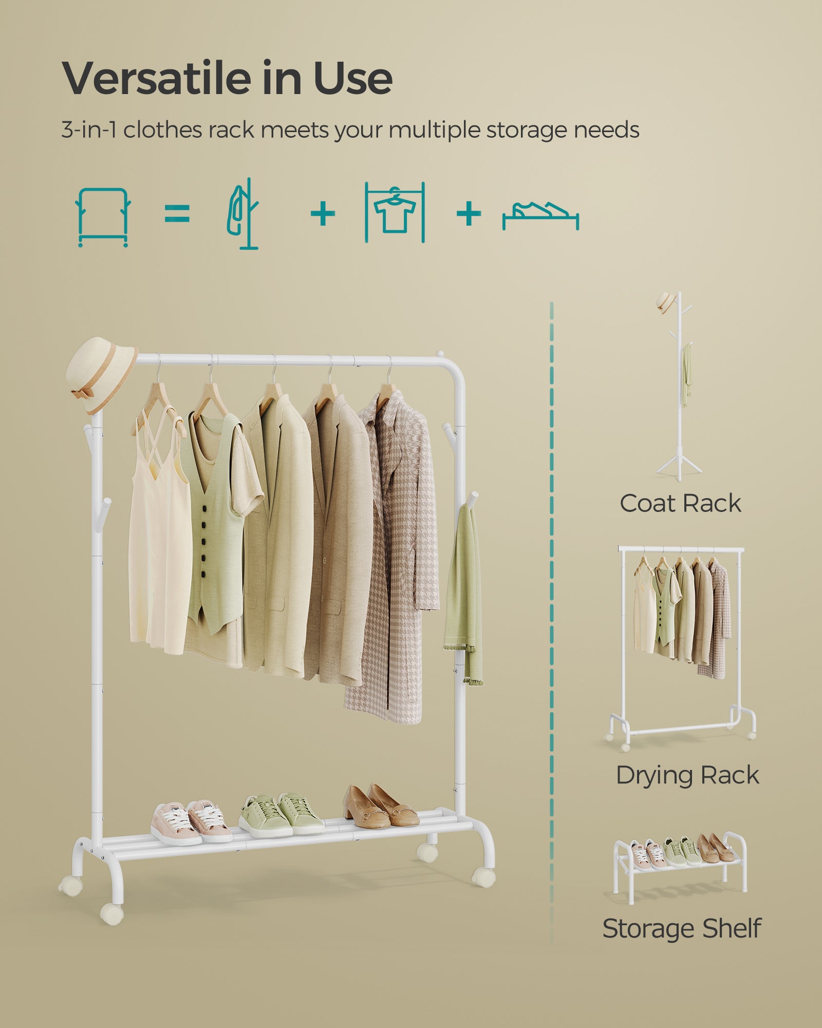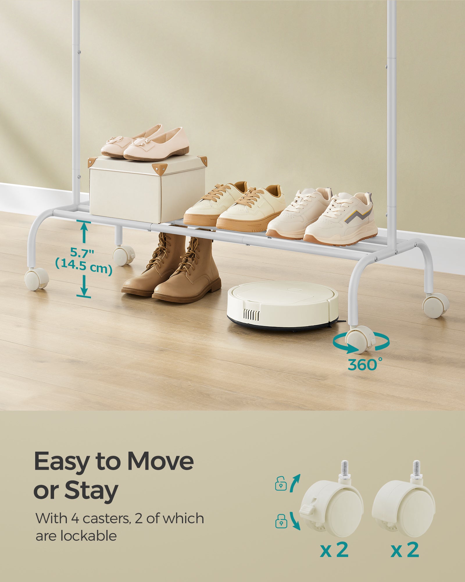 Clothes Rack, Single-Rod Clothing Rack with Wheels, Heavy-Duty Metal Frame, Garment Rack, 110 lb Max. Total Load, 40.7 Inches Wide, Clothes Storage and Display, Cloud White