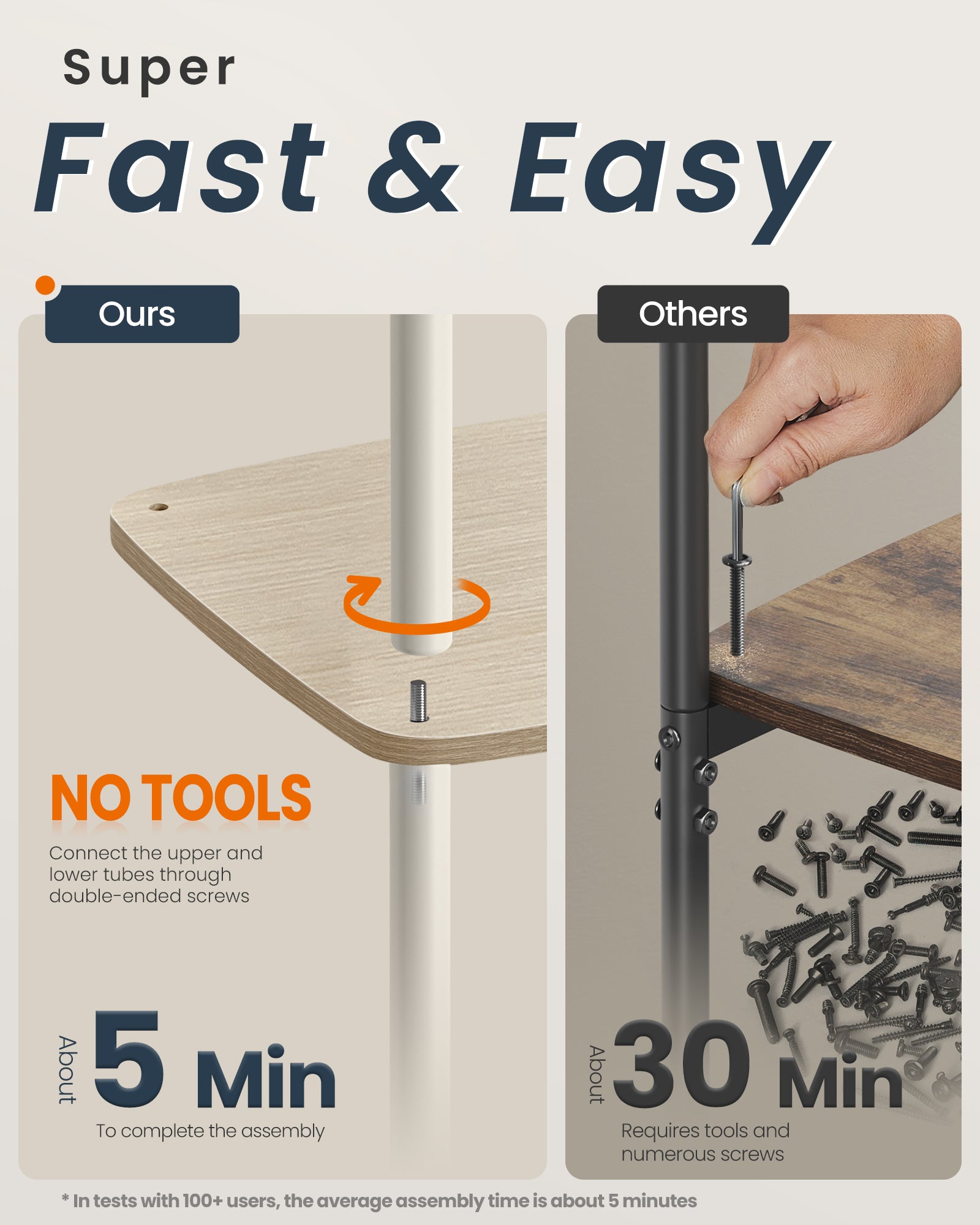 Side Table, 3-Tier Nightstand with Storage, End Table with Fabric Basket, for Bedroom, Living Room, Steel Frame, Superfast Toolless Assembly, Modern, Natural Beige
