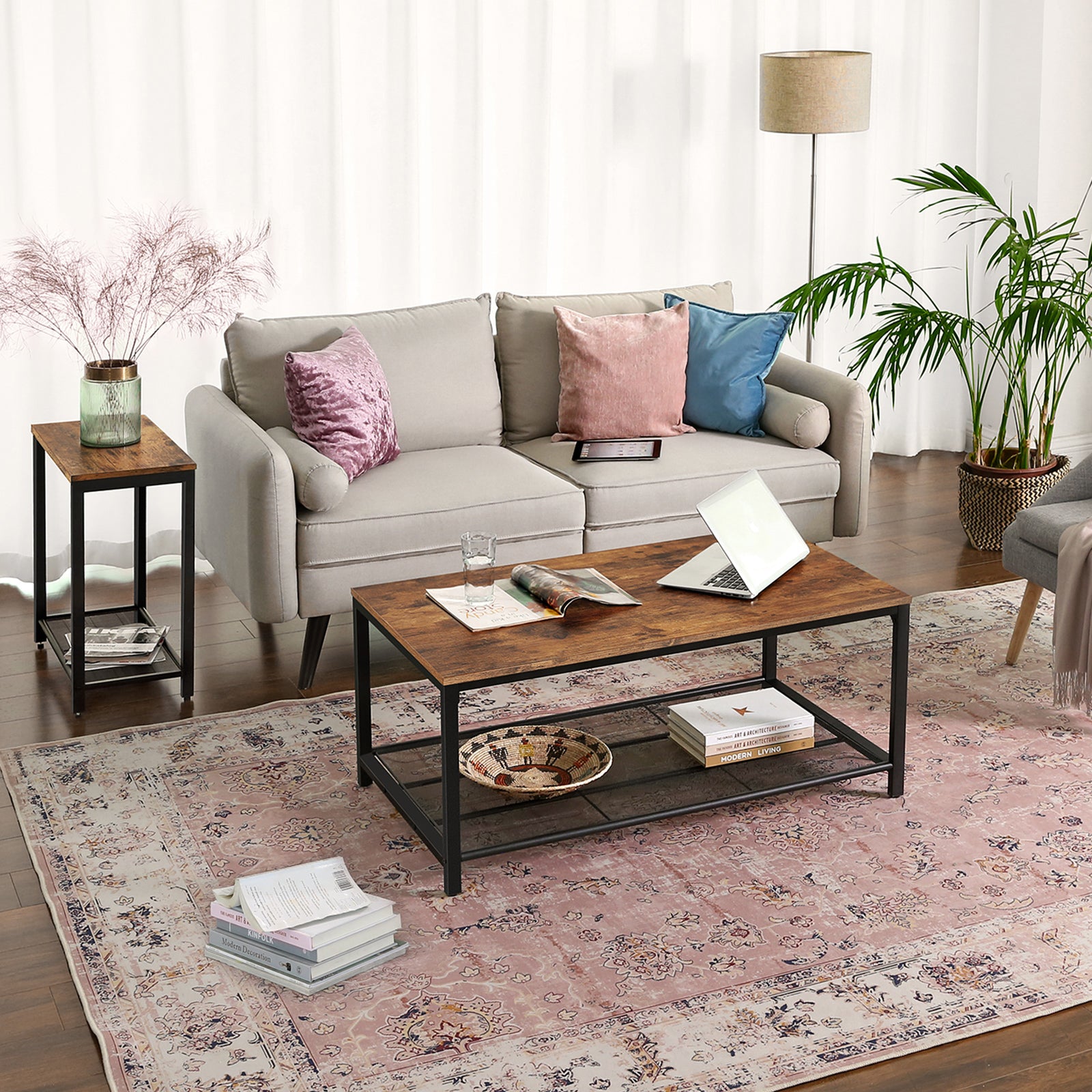 Side Table, Narrow Small End Table with Mesh Shelf, Nightstand, Living Room, Bedroom, Kitchen, Metal, Industrial Design, Rustic Brown