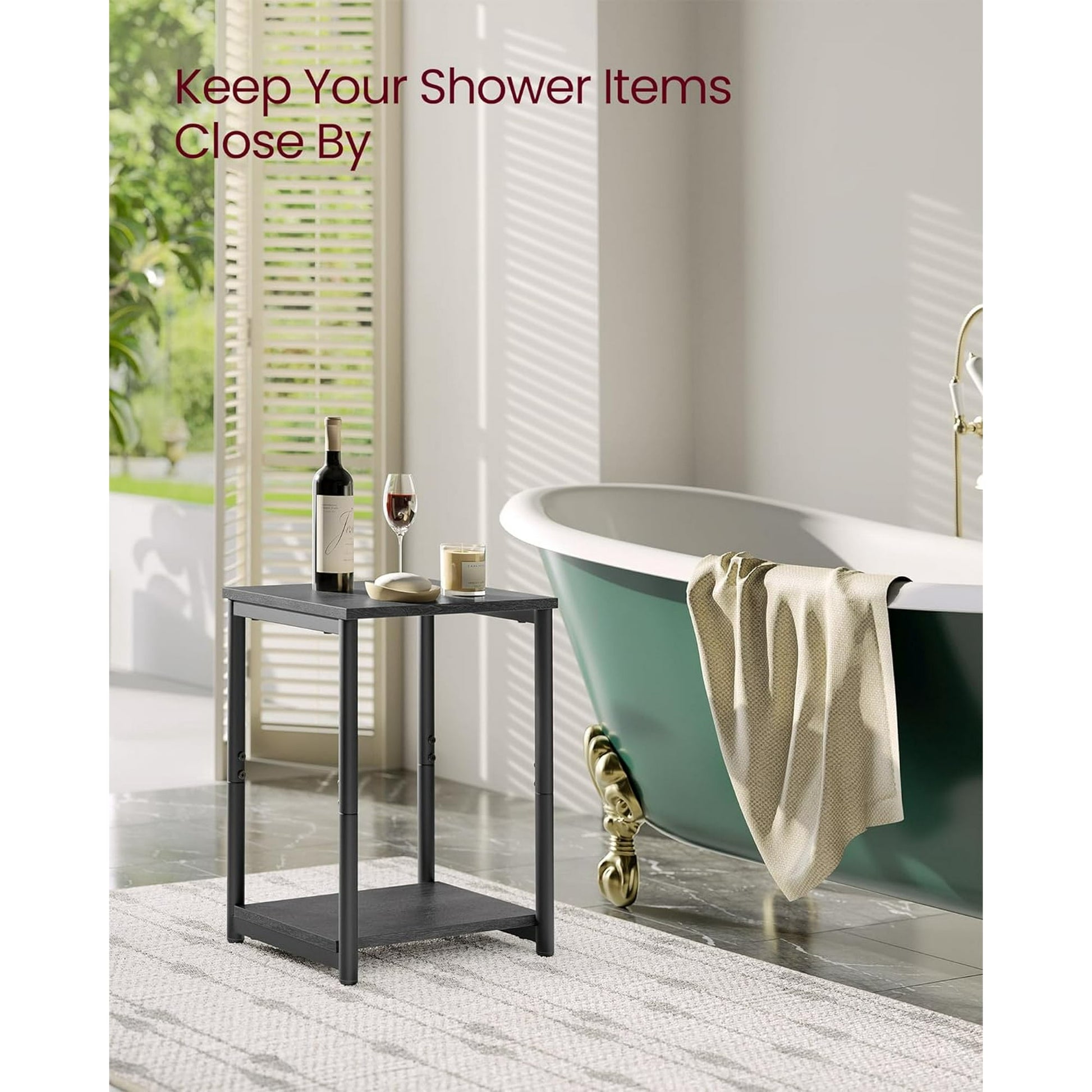 - [Strong yet Stable] 2 steel side frames lift and brace 2 particleboard panels, making a solid structure that stays put after loaded with 44 lb of items on each tier. Small unevenness in the floor? The feet are adjustable to even it out